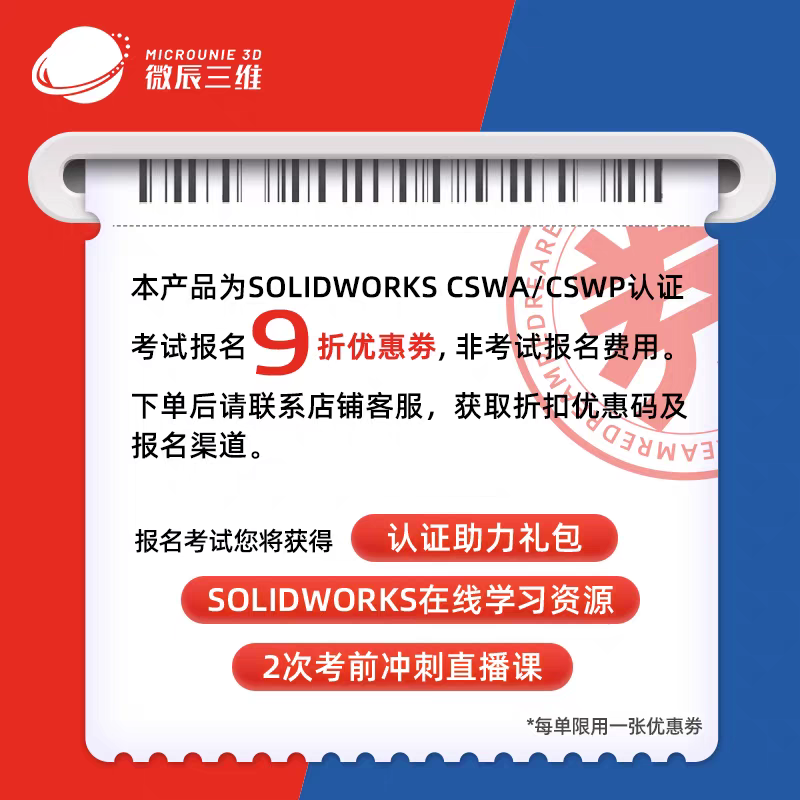 SOLIDWORKS考试 CSWA/CSWP证书 机械工业出版社报名9折优惠劵