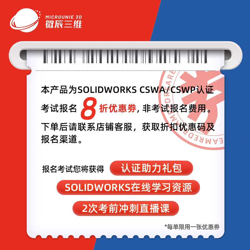 SOLIDWORKS考试 CSWA/CSWP证书 机械工业出版社报名8折优惠劵
