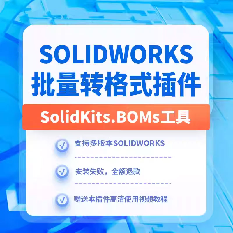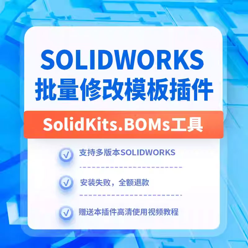 SOLIDWORKS工程图模板批量替换插件-SolidKits.BOMs工具,具有可实现工程图模板的批量替换,单位系统的批量修改,批量定义模型材质等功能。该插件操作简单快捷,只需要提前打开SOLIDWORKS软件,执行后程序会自动完成所有替换操作。为了回馈新老客户,此工具目前限时优惠,仅需99元即可永久使用!